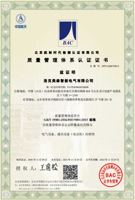 洛克美森智能电气有限公司成立于2016年,是一家注册于济南市高新技术开发区的高新技术企业。公司集科研开发、生产经营、技术服务、系统集成于一体,专注于新型电力系统为主体的新型能源体系的建设。公司始终坚持绿色低碳高质量发展的核心理念,积极引进国内外先进技术和管理经验,致力于打造中国一流的能碳服务商。